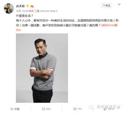 看到这里,小编才恍然大悟,原来古天乐要来郑州啦!