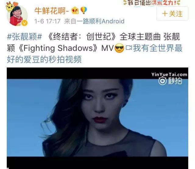 早在2015年,张靓颖就曾合作《终结者:创世纪》,献唱主题曲《Fighting Shadows》。
