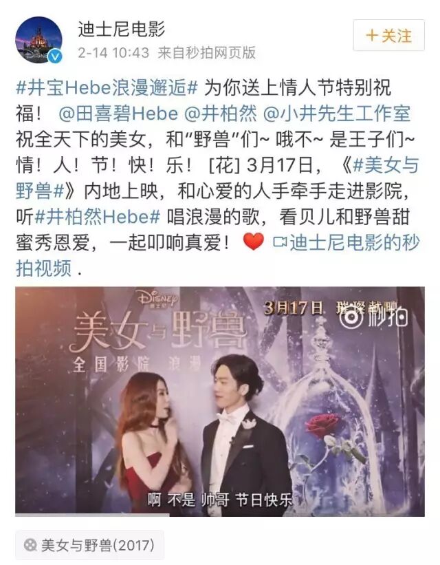 中国推广曲,难超越原版,很容易就处于尴尬的地位。今年的《美女与野兽》,英文歌曲是Ariana Grande和John Legend,中文则是田馥甄和井柏然合作。这样难免会有对比。