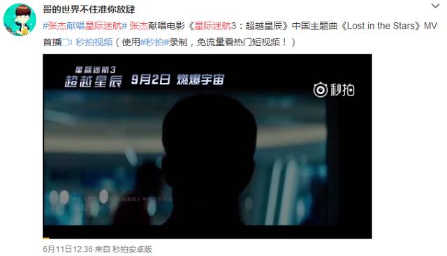 除此之外,张杰为《间谍同盟》献唱的歌曲《Give You My World》,也不单单是华语地区推广曲,更是拿下了“全球唯一推广曲”的名号。