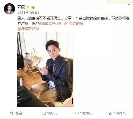 而另一位伴郎韩庚针对自己不雅行为,一直未做回应。我们只是想听听当事人对婚礼一事的详细解释,并且道个歉就好了。但是等来的确是懵圈了的愚人节。4月1日韩庚发了一条微博,不是道歉,而是打广告。这智商。。出事了还打广告?我就想问问韩庚你很缺钱吗?还没赚够啊!如此下去,你很快就没钱赚了!你别不相信!很快强大的网友都变成了朝阳大妈,扒出韩庚多重猛料,一扒吓一跳。
