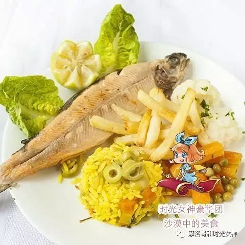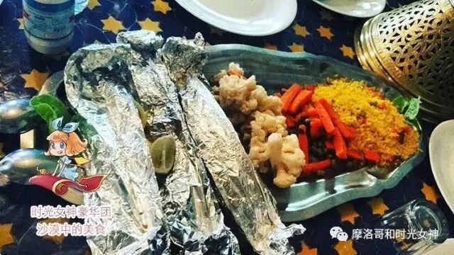 在贫瘠炎热的沙漠,以及被塔吉锅煎熬了一路的小伙伴们,都对这条美味的烤鱼和丰富的沙拉水果赞不绝口。