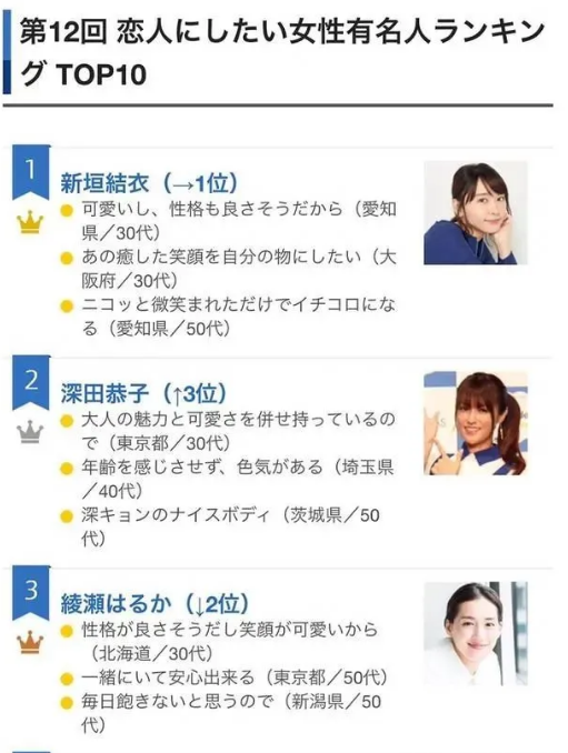 在日本“最想成为恋人的女性名人榜”上,她也高居一位,是不少男明星的理想型。