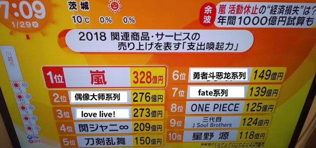 在日本周边商品销售额排行榜中,星野源吸金能力只比风靡全世界的漫画《海贼王》差一点。