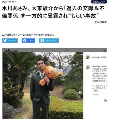 前脚渡部建刚糊,大东俊介马上又粉墨登场。
