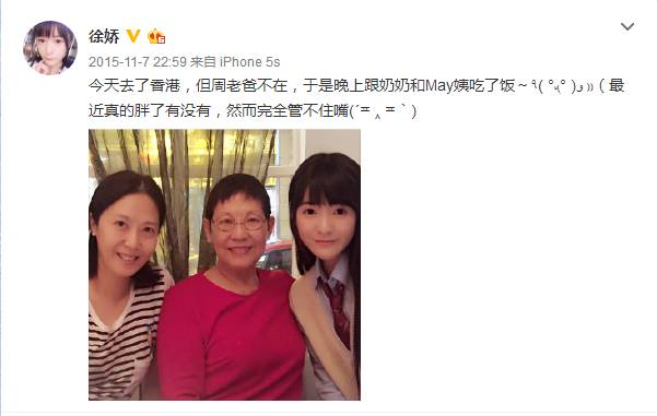 徐娇曾评价星爷:“他比较像我朋友和学校老师,不太像爸爸,不会唠叨说教。”