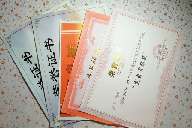 国家励志奖学金、四川传媒学院二等奖学金、“突出贡献”奖、“优秀学生”、“优秀学生干部标兵”、“优秀学生干部”、“优秀团员”,获普通话一级乙等证书、计算机一级证书,支教协会“优秀志愿者”