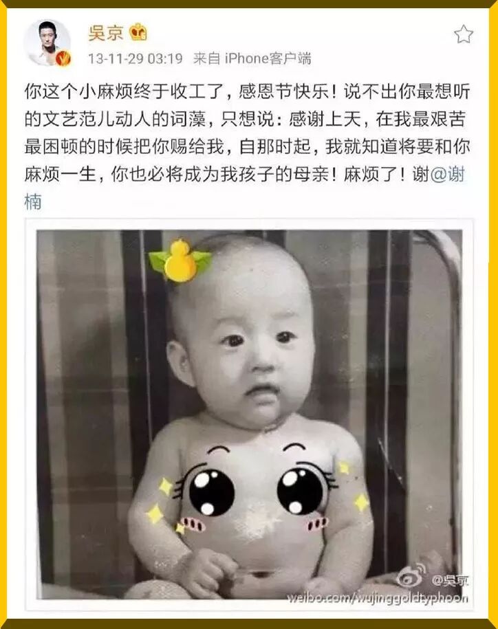 这句经典情话中所描述的情比金坚,大概就是吴京和谢楠的爱情吧。