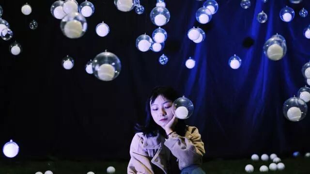 夜里白色在黑色之下成为最刺眼的颜色。当我们把自己孤独变成一个个封锁的圆球,在变幻的灯光之中变幻不同的颜色。