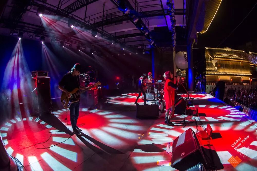 作为近年来最受关注的国内乐队之一,万能青年旅店也首次与赤水结缘,在昨晚的演出中带来了《在这颗行星上所有的酒馆》、《十万嬉皮》、《大石碎胸口》等曲目,耐人寻味的歌词和气势蓬勃亦不乏优美的编曲,同时加入了小号和萨克斯的嘹亮音色,让现场刮起了一阵硬朗的“摇滚飓风”。