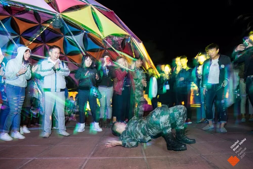 音乐徐徐响起,当地乐迷期待已久的谢天笑压轴登台,并以古筝弹奏拉开表演序幕。随着越来越激烈的音乐响起,全场沸腾。谢天笑接连带来《阿诗玛》、《把夜晚染黑》等经典曲目后,隆重邀请了“自己二十多年的一位好朋友”——摇滚女歌手罗琦登台。两人在音乐上的合作并非首次,但对于当地观众却实属惊喜。罗琦带来了《给所有知道我名字的人》以及首次在现场演出的一首新歌《重生》——它在上个月刚刚录制完成。