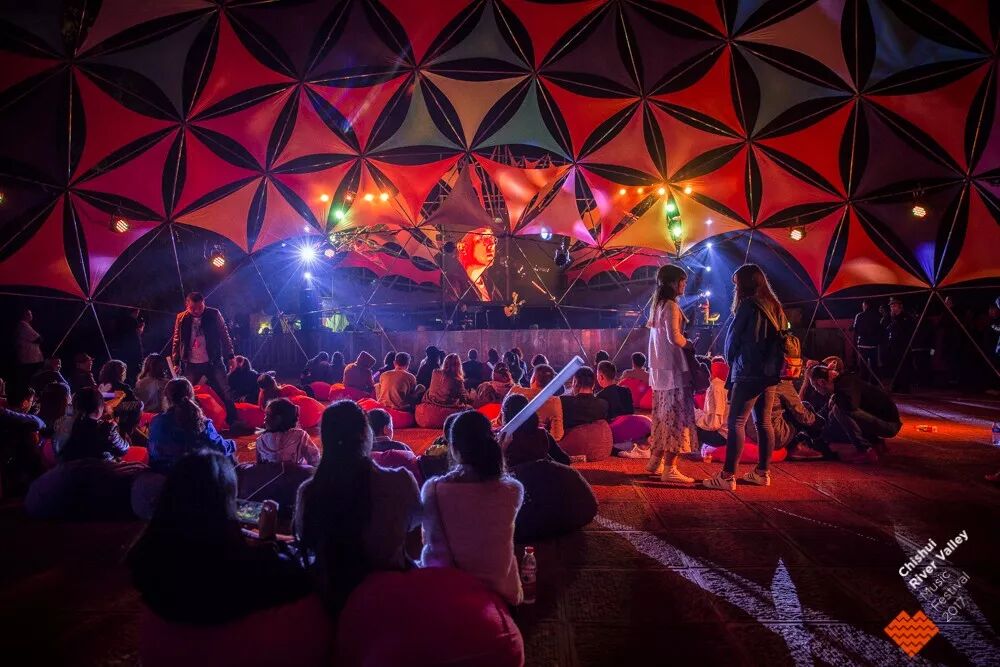 在演出的同时,Modern Sky World Music厂牌在赤水河谷音乐季开办了驿站大讲坛!昨日在复兴驿站,一场题为“贵州民族音乐大赏”的座谈吸引了众多听众,驿站里人头攒动,尧十三 、肖才刚、涂飞、易佳林、老丹、张晓舟挑选并播放了经典的贵州及西南少数民族音乐,并从历史沿袭等角度畅谈了贵州民间音乐源流。