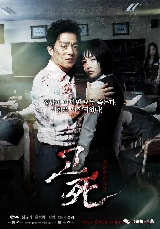 《考死》是由尹鸿承执导,李凡秀、尹晶喜、南奎丽、金范主演的恐怖惊悚电影,该片于2008年8月7日在韩国上映。该片讲述了优等生们为了参加赌上性命的期中考试而进行生存竞争的恐怖故事。五月,对于准备高考的学生来说所剩时间不多了,期中考试刚刚结束,新一轮的排名出来。姐妹淘姜伊娜(南奎丽饰)和明孝(孙云恩饰)分列第五和第四名,成绩优秀。同班男生姜贤喜欢伊娜,知道她喜欢听歌,便送给她一个mp3,更约她们周五晚去参加party……