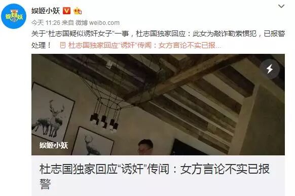 表示当晚其实是杜志国被杨姓女子下了药,也没有了意识,事后更向杜志国敲诈数千万元,杜志国方面认为这是团伙作案,已经报案处理。