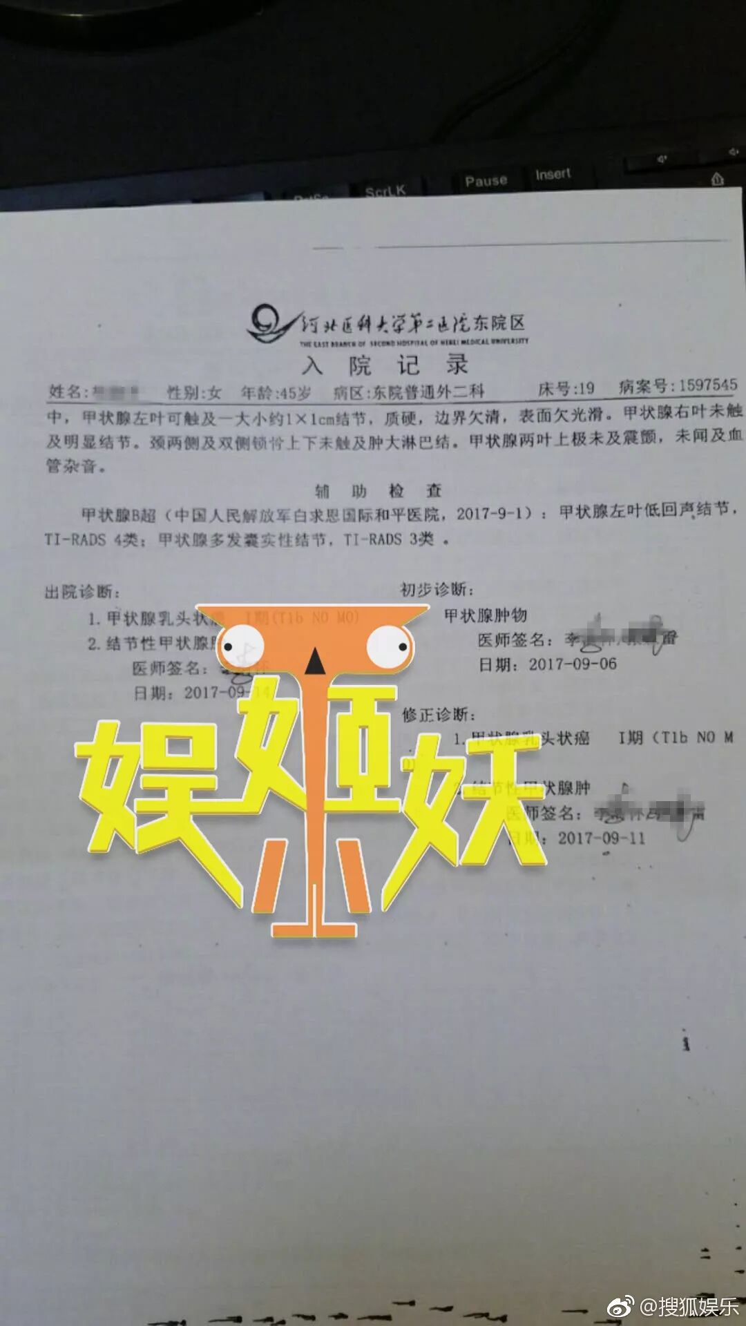 为了证明她的确怀了孕,又因为甲状腺癌流产,她还晒出了医院证明。