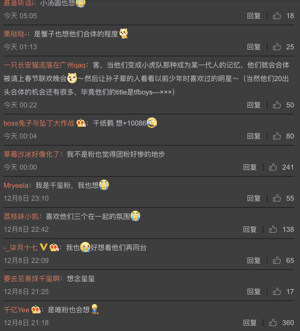TFBOYS再次上热搜,这一次连路人也破防了 偶像说 内地男星 2021-12-09 19:28:15 595 创作不易,用心坚持,欢迎请BaGua喝几杯爱心咖啡!打赏并支持本文 打赏并删除本文 昨天我还说跟你们回忆三小只最后一次红毯合体,今天,就看到三小只上热搜了,热搜词条是“两年前的今天是TFBOYS最后一次合体”。打开热搜,看到的是三小只在音乐娱乐盛典上的红毯秀,不知不觉,已经过去两年了,当时三小只公开承认:三个人合体就是最大的亮点。感动了无数粉丝。如今回顾起来,粉丝还是很激动,连路人也破防了。这样的合体,是粉丝一直期待的事情,同时也是路人想要看到的画面。三人要那么好的朋友,也是很好的合作伙伴,他们代表着少年友情的美好,出现在太多人的青春里。其实不光是团粉想要他们合体,小螃蟹、千纸鹤、小汤圆,甚至cp粉都希望三人合体,主要是三人现在露脸的机会太少了,大家都不计较曾经的那些了。很难得能在评论区看到这样的画面,好像粉丝们从未争吵过一样。那次是至今为止最后一个合体走红毯,之后三小只也合体过,但没有走红毯这个环节了,这一幕也成为不少粉丝的意难平。真希望公司可以多看看粉丝的呼声,让他们再合体一次吧! 创作不易,用心坚持,欢迎请BaGua喝几杯爱心咖啡!打赏并支持本文 打赏并删除本文 感谢您的支持鼓励,我会继续努力的!文章地址:用户邮箱:打赏金额:USDT 请输入数字点击”去打赏“,即可进行打赏支持本文章哦 tfboys About the Author 偶像说 功能介绍:这里有很多个明星,但是我们最爱讲TFBOYS的事情,有关三小只的小秘密你想听嘛? Related Posts 黄子韬徐艺洋餐厅约会被偶遇,戴情侣帽秀恩爱,却互不搭理显冷漠 2023-02-15 22:40:08 伊能静带7岁女儿小米粒回台北探亲,网友:比大s识大体! 2023-02-03 23:09:13 网传TFBOYS十周年演唱会完成备案,时间跟李飞说的对上了! 2023-02-02 23:54:30 蔡少芬深夜陪老公玩穿越机,炫耀:我男人没有我不成!夫妻合照好甜 2023-01-06 23:31:16 黄景瑜工作室告黑胜诉,历时已久,终于守得云开见月明 2023-01-06 23:31:16 发表评论