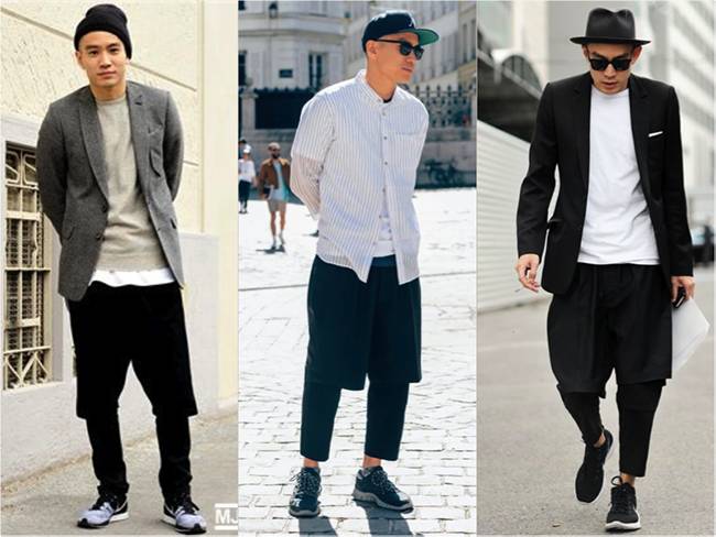 ▼技巧3、色系要和谐。身高不够高的亚州男生,最担心宽裤无法修饰小腿,看起来显矮,建议以同色穿搭形成视觉上的延伸,降低身型被缩短的可能性。