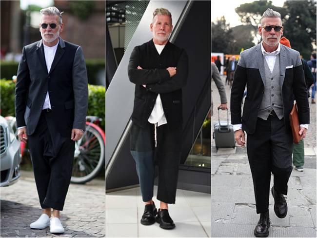 ▼Nick Wooster 绅士混搭风格的宽裤。身为大叔绅士,最爱的当然是正装造型,宽裤搭配西装外套或是正装背心,巧妙地将绅士造型年轻化!