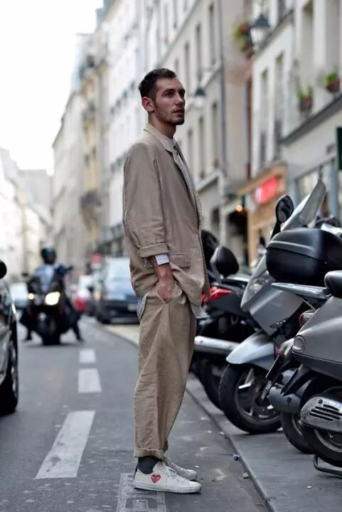 ▼除了和风,春夏时可以尝试卡其色、米色单品,展现慵懒气氛,让脚上的球鞋更加亮眼!