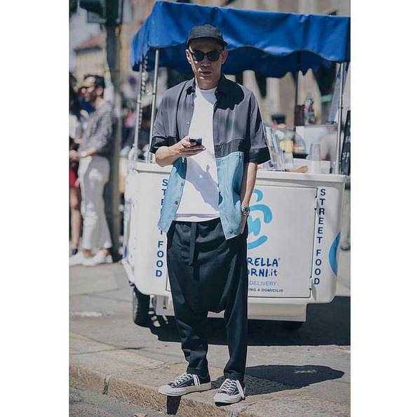 ▼说到宽裤 x 球鞋穿搭,不能不提敲会玩的 Eugene Tong ,多层次穿搭看似轻松惬意、却饱含黑 x 白的小巧思,也帆布鞋不再单调!