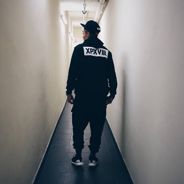 ▼周柏豪以黑色无袖上衣、帽款搭上白色 nmd og white 球鞋作为亮点,用宽裤带出夏天浪子氛围~