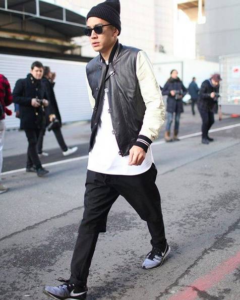 ▼而在长短宽裤搭配、以及棒球外套 + 毛帽的搭配下,运动感超强的 nike flyknit 也变得潮味十足!