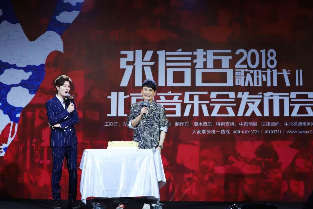 3月26日,张信哲“歌时代Ⅱ北京音乐会发布会”在京举行。发布会现场揭幕了知名艺术家薛松为本次音乐会绘制的主题艺术海报,展现了“歌时代Ⅱ音乐会”在艺术层次上的用心和不凡。除此之外,当天正好也是哲哥的生日,主办方特意准备了生日蛋糕为哲哥庆祝,现场好友及媒体、粉丝纷纷为哲哥送上祝福。