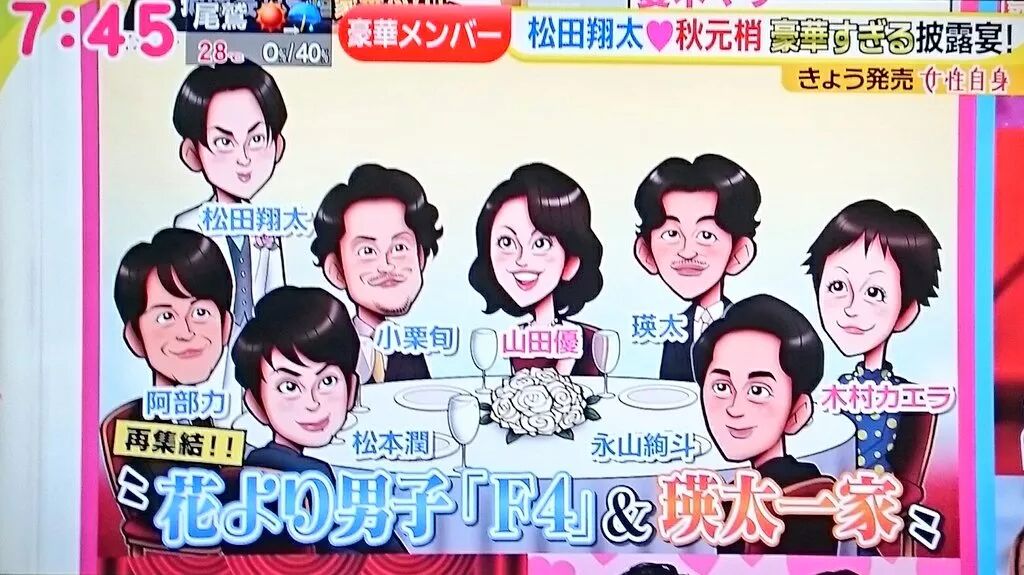 与F3同一桌的还有瑛太&木村KAELA夫妇,以及瑛太的弟弟永山绚斗(永山家和松田家关系有多好...)