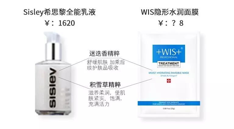 面膜的价值主要在于精华液。WIS隐形水润面膜一片就含有25g的精华液,简直是土豪加大版。