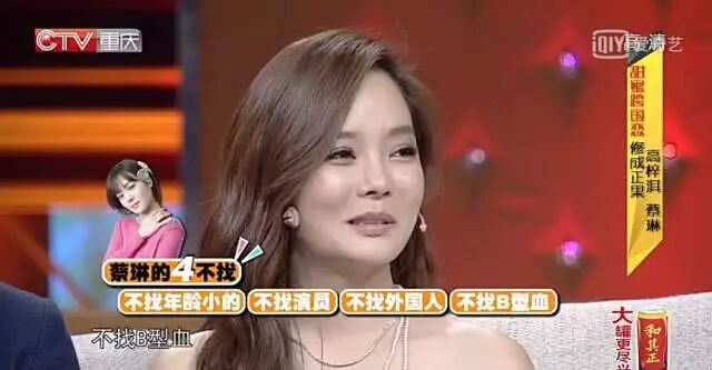 还为自己定了一个“四不找”的择偶标准:不找年龄比自己小的,不找外国人,不找演员,不找B型血。