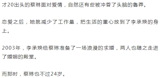 而让她做出这个决定的男人就是韩国音乐人李承焕,被称为“情歌王子”的他大了蔡琳整整14岁。