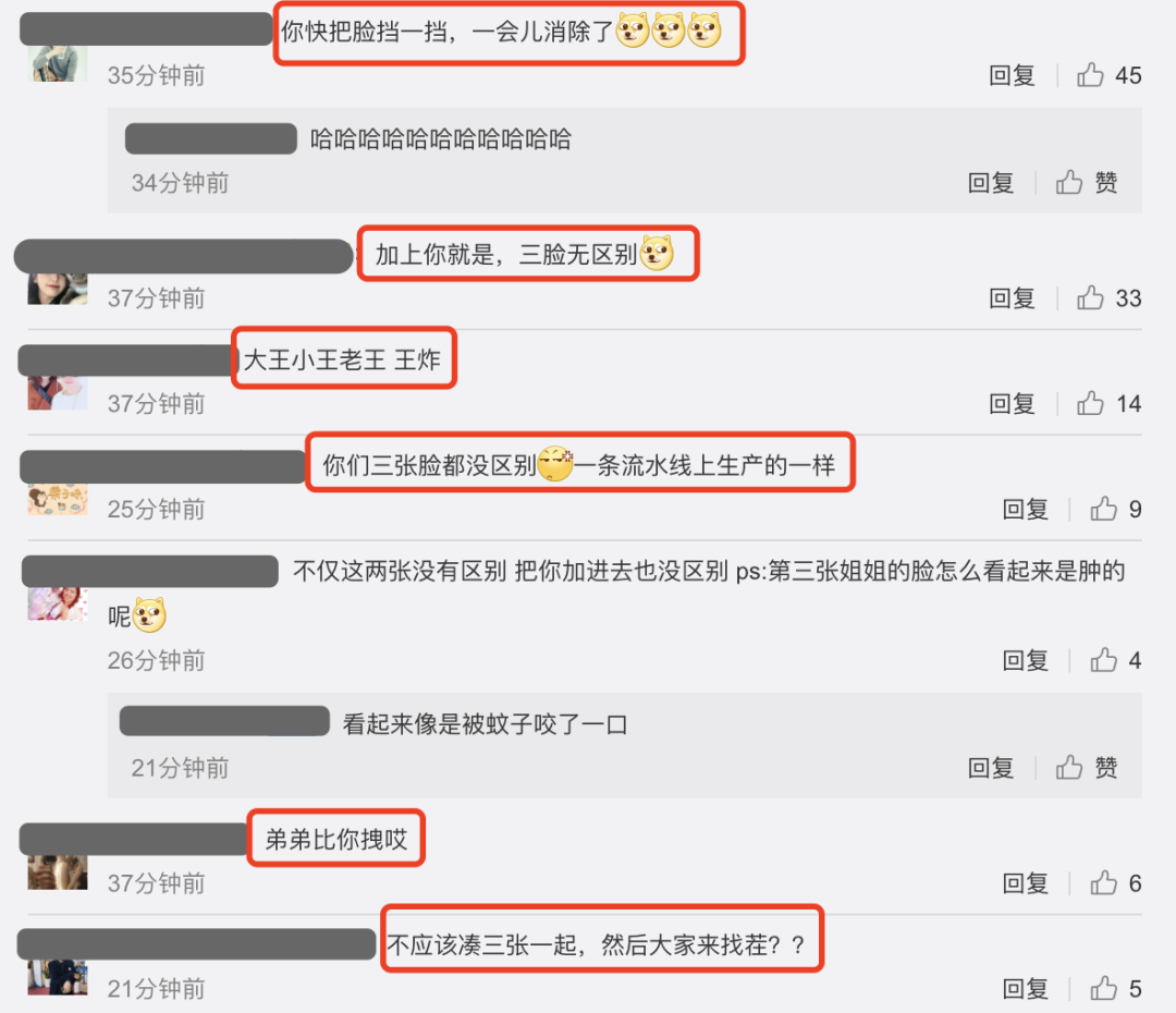 不过网友们的脑洞依然很大,比如让王栎鑫快挡一挡自己的脸,不然就消除了。别说姐弟俩了,王栎鑫和儿女也共用一张脸,一条流水线上生产的,三人是大王小王老王,王炸!