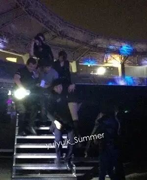 2014年10月18日,f(x)参加了SMTOWN世界巡演上海站,水晶在表演完后离开舞台时,不慎在台阶上晕倒。回顾翻拍视频的时候,可以发现水晶在台上就已经很不舒服了。