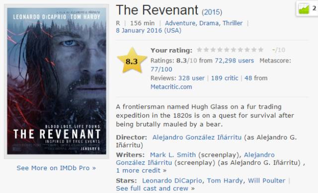 导演亚利桑德罗·冈萨雷斯·伊纳里多是去年才凭借《鸟人》摘得奥斯卡最佳导演,大导加持,这次小李也被虐得不轻。