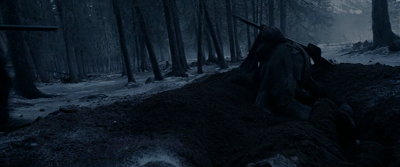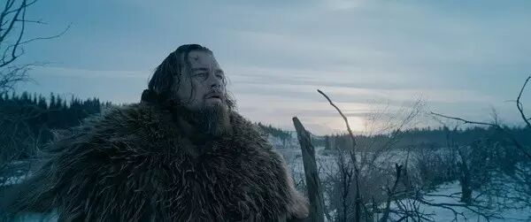 就是这样的冰天雪地,小李子要裹着浸湿之后100磅重的麋鹿皮和熊皮来回趟河
