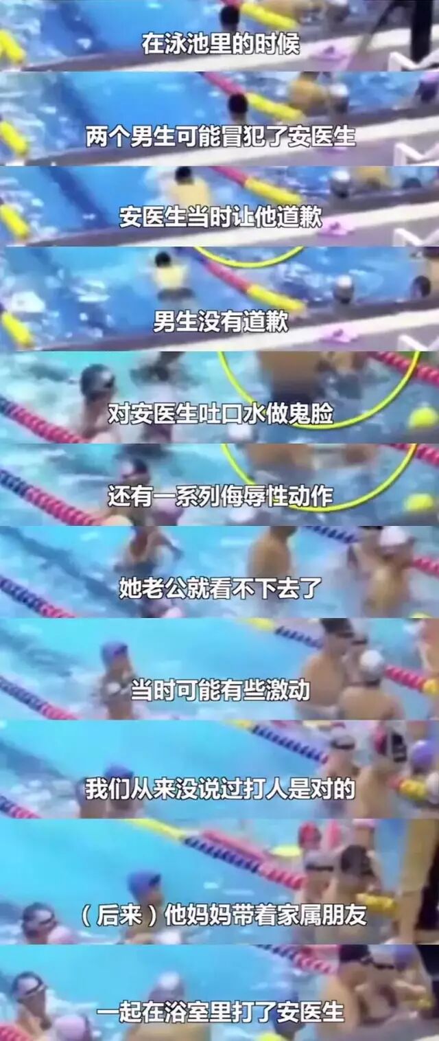 最后标题为“疑因妻子游泳时被撞到,男子竟在游泳池按着小孩打”的视频在网上大肆传播,没弄清楚事情来龙去脉的键盘侠,不管三七二十一先骂为快,一时间把安医生推到了舆论的风口浪尖。