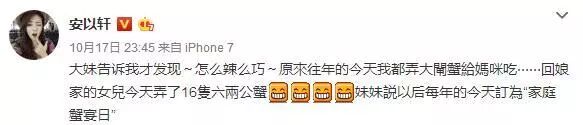 这两天看到一条热搜,叫做“安以轩回娘家吃大闸蟹”。