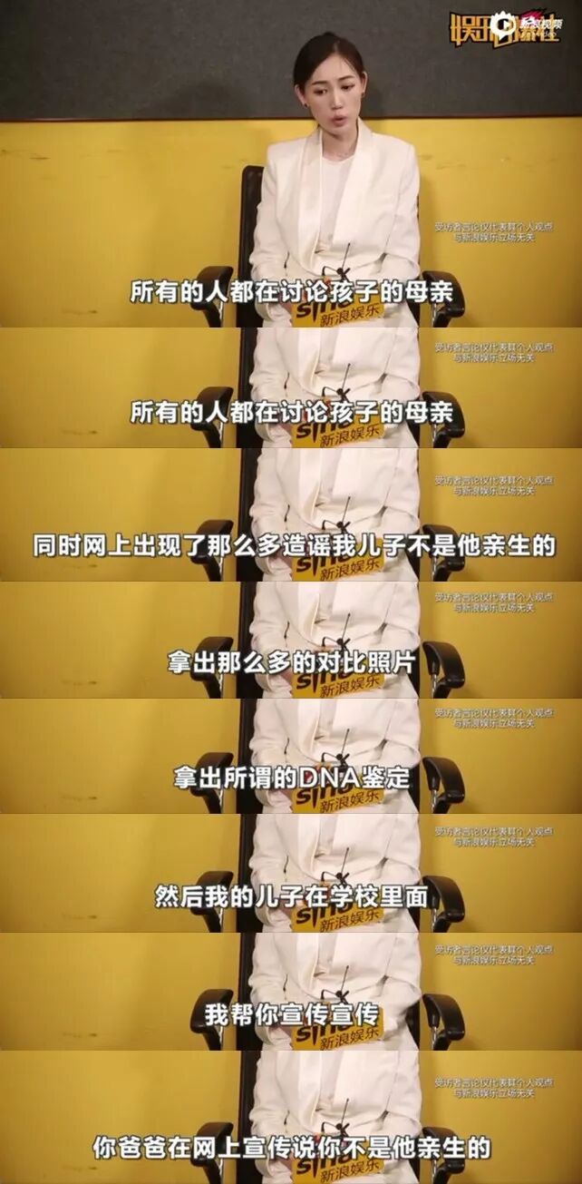 马蓉在采访里说:“网上出现了那么多造谣,说我儿子不是他亲生的,拿出那么多的对比照片,拿出所谓的DNA鉴定。