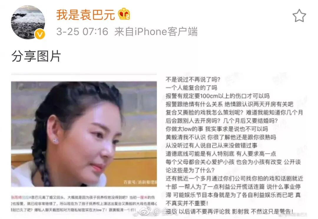 然而昨早她的前夫袁巴元却又跳出来,置她于舆论漩涡之中,让#张雨绮孩子#又上了热搜。