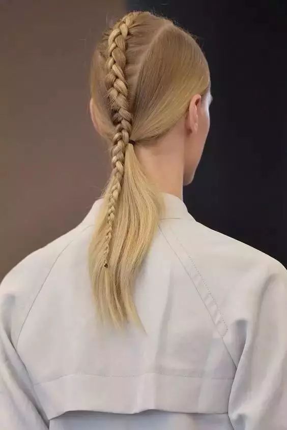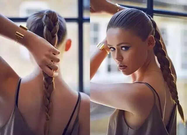 或是将马尾高高的束起然后编成辫子性感又干练。