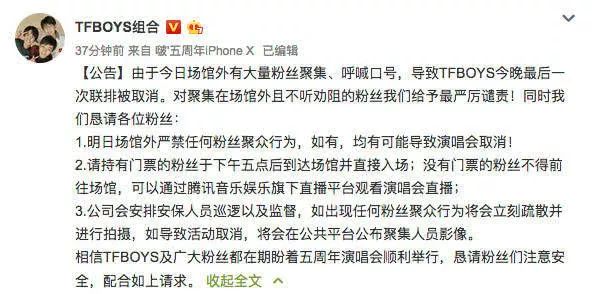 然而,他们的偶像根本看不见这用心良苦的光海。为了让聚集的粉丝尽快散去,三位艺人当夜的联排被迫取消。