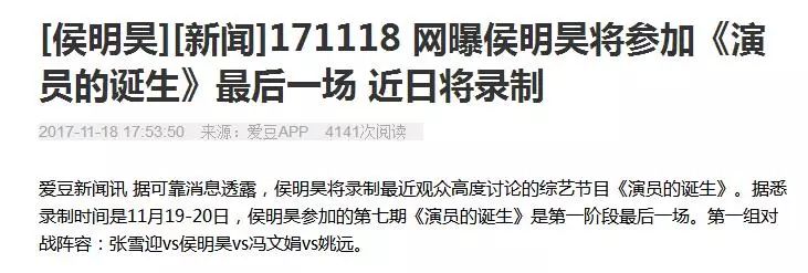 最近,有网友路透,今年年初突然爆发的流量级新生代演员侯明昊,参与了《演员的诞生》的录制,但由于现场管控严格,并没有相关视频或图片流出。但根据参与录制的观众反应,侯明昊的表现十分值得一看。