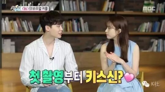 3日播出的《Section TV》,访问到MBC新水木剧《W-两个世界》的男女主角:韩孝周和李钟硕。当天两人正在拍摄宣传海报,记者提问:第一场戏就是吻戏吗?