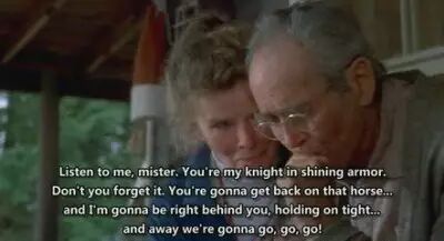 88. Listen to me, mister. You're myknight in shining armor. Don't you forget it. You're going to get back on thathorse, and I'm going to be right behind you, holding on tight, and away we'regonna go, go, go!