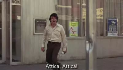 为了帮同性恋男友筹钱做变性手术,桑尼铤而走险抢劫了一家银行,但由于筹划不够周密而被警察包围。在双方对峙过程中,桑尼高呼“Attica!”,提醒围观市民别忘了阿提卡事件,试图激起他们的同仇敌忾之心。1971年的阿提卡事件是美国历史上最血腥的监狱暴动事件,1200多名参与暴乱的囚犯将十几名监狱工作人员作为人质,与监狱当局谈判,要求改善条件。当时的州长罗切斯特调集州警和武装部队进行了粗暴地镇压,造成32名囚犯和11名监狱工作人员死亡。