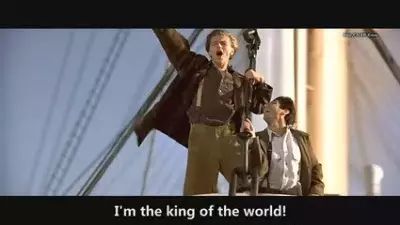 成功登上泰坦尼克号的杰克兴奋不已,站在船头振臂高呼“我是世界之王!”。后来卡梅隆在领取奥斯卡最佳导演奖的时候也以这句话作为谢辞。本片全球票房高达18亿美元,是电影史上票房最高的影片。