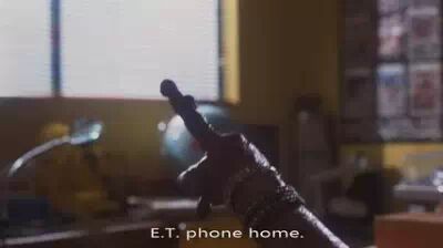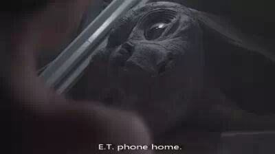 这是E.T.学会的第一句话,也是E.T.复活后说的第一句话。20周年纪念版中,在E.T说出"E.T.phone home"的段落中,使用了计算机技术使得E.T.的嘴唇动作与台词相符。