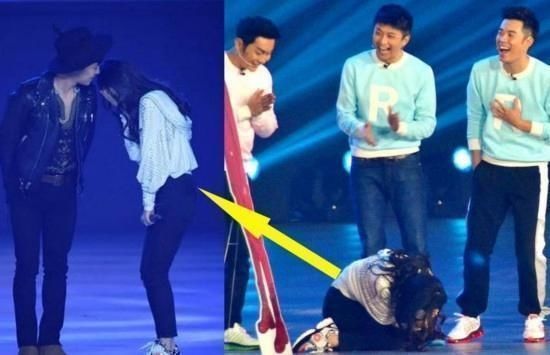 相比杜海涛, baby更是夸张,见到偶像权志龙,激动得瘫软在地完全控制不住自己!