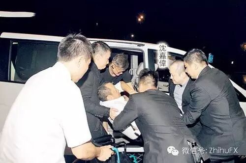 曾志伟被抬上车