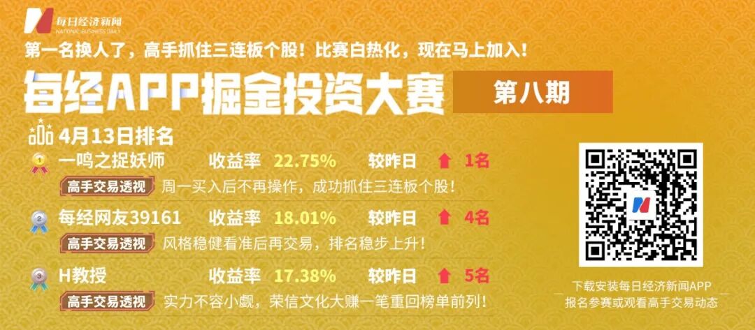 【第一名换人了,高手抓住三连板个股!比赛白热化,现在马上加入!】周四,出版传媒股走强,中国科传3连板。每日经济新闻APP举办的掘金大赛第八期比赛中,多位选手抓住机会,收益率持续走高!收盘,第一名“一鸣之捉妖师”收益率22.75%,第二名“每经网友39161”收益率18.01%,第三名“H教授”收益率17.38%,再次杀回榜单前列。比赛逐渐白热化,各位高手你追我赶,力争上游,究竟谁能够成为半程冠军?周五收盘后揭晓答案!赶快下载安装每日经济新闻APP报名参赛,和高手切磋提升交易技能!
